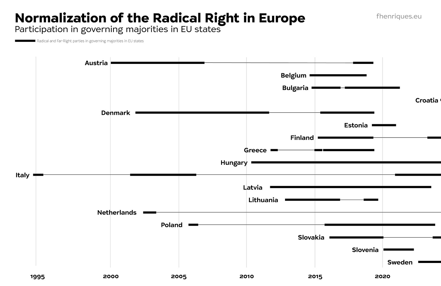 And the year after was the time for a coalition of liberals, conservatives and the far-right in the Netherlands. Then Poland, Hungary, Greece, Latvia, Belgium, Bulgaria, Finland, Slovakia, Estonia, Slovenia, Croatia.