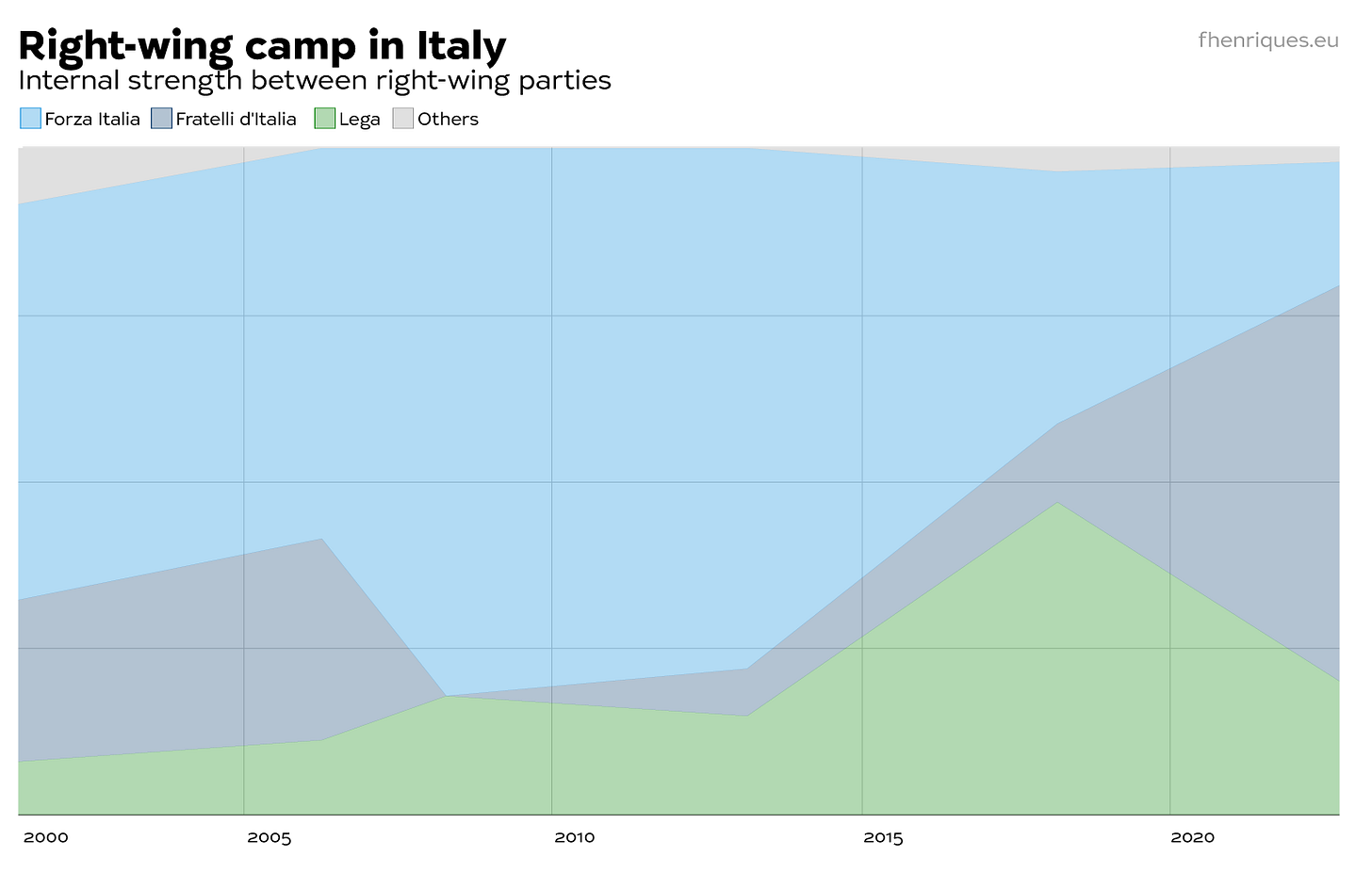 In Italy, plurality was always a given. What has changed is the balance of power within the Right; in 2018, the League’s Matteo Salvini (a regionalist turned nationalist) put an end to two decades of Silvio Berlusconi’s dominance; in 2022, post-fascist Brothers of Italy’s Giorgia Meloni was elected prime minister. The Right radicalised itself from within.