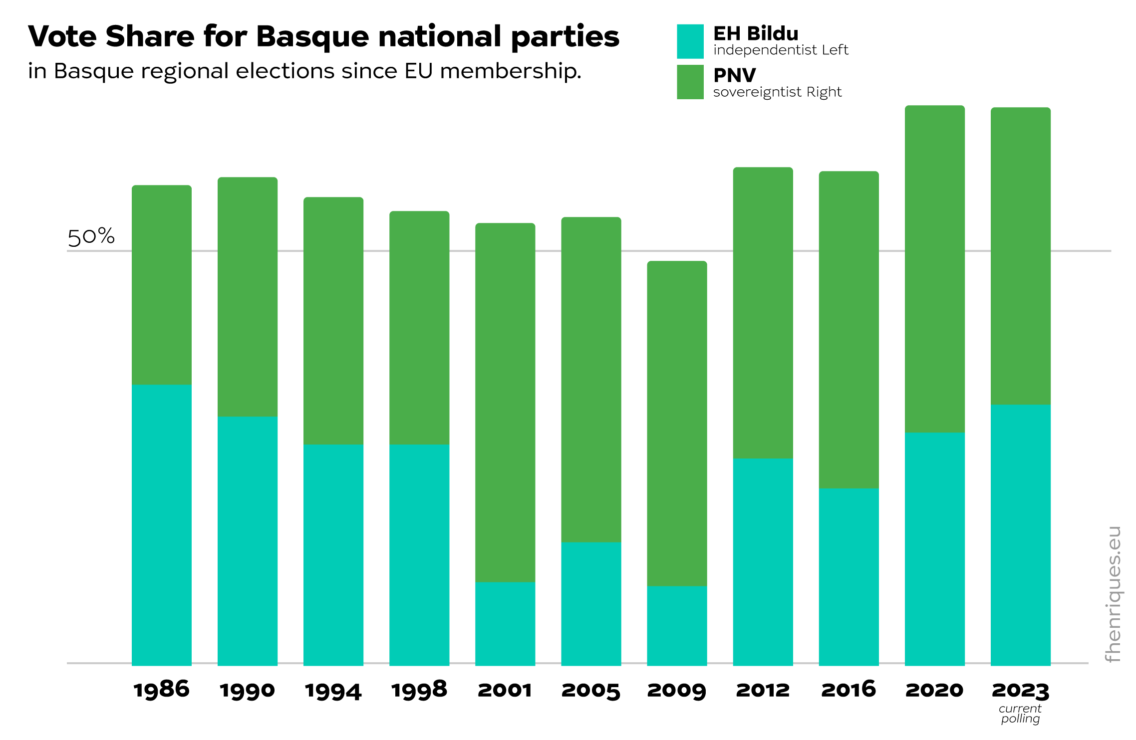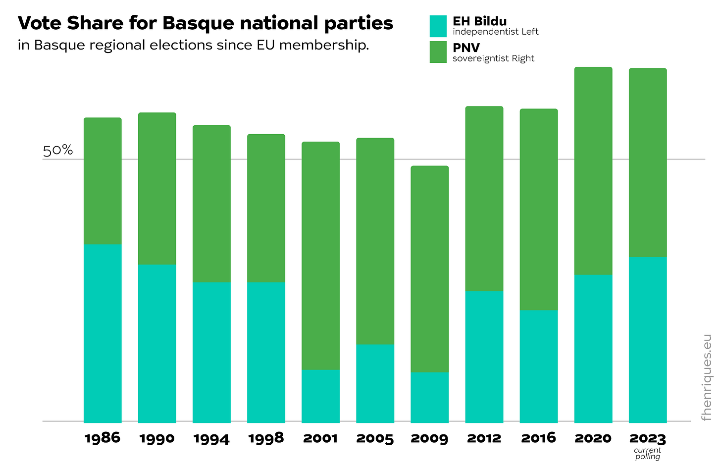 The centre-right has traditionally represented these ambitions for independence. Their platforms brought together neoliberal economic politics that serve the interest of big capital in these two rich regions and a centrist approach open to deals with both the all-Spain centre-left PSOE and the right-wing Partido Popular. After the financial crisis of the late 2000s and as discontent with status-quo politics grew, left-wing pro-independence forces gained prominence. The Republic Left (ERC) in Catalonia currently leads the regional government, whereas Basque Country Unite (EH Bildu) recently became the biggest nationalist party across the Basque regions.