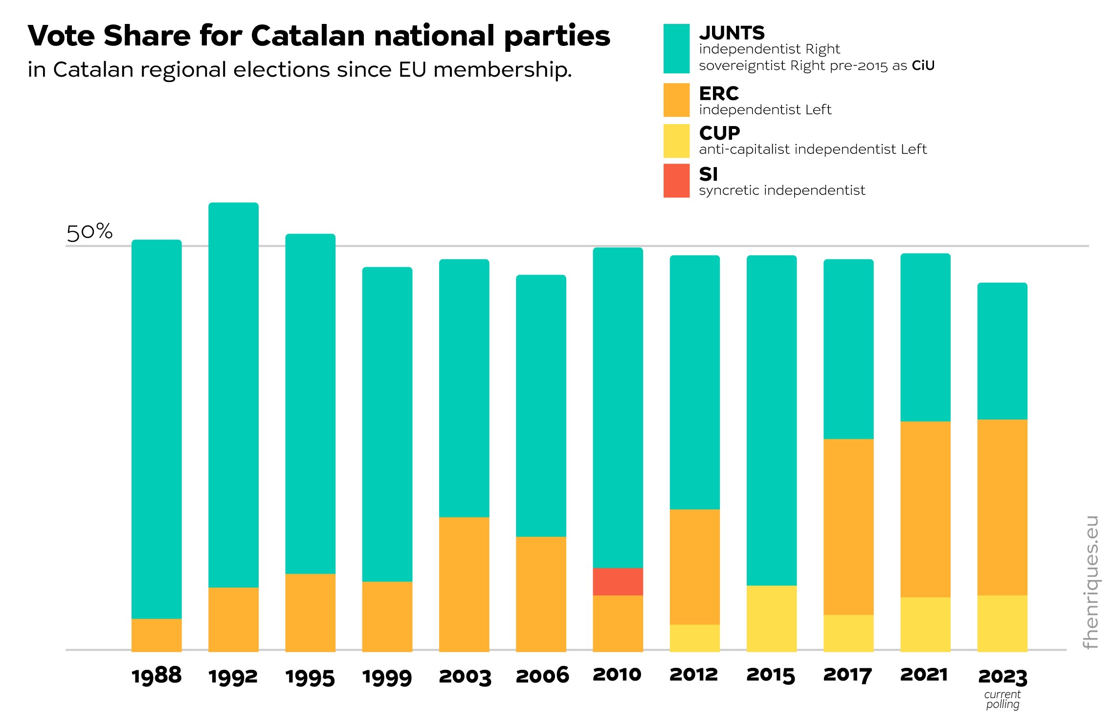 Looking to the future, the outcome of the negotiations around the July elections in Spain remains uncertain. The next federal elections in Belgium will take place on the same day as the European election in 2024. Ireland will vote in 2025. All we can say today is that the politics of borders, referendums and flags is back.