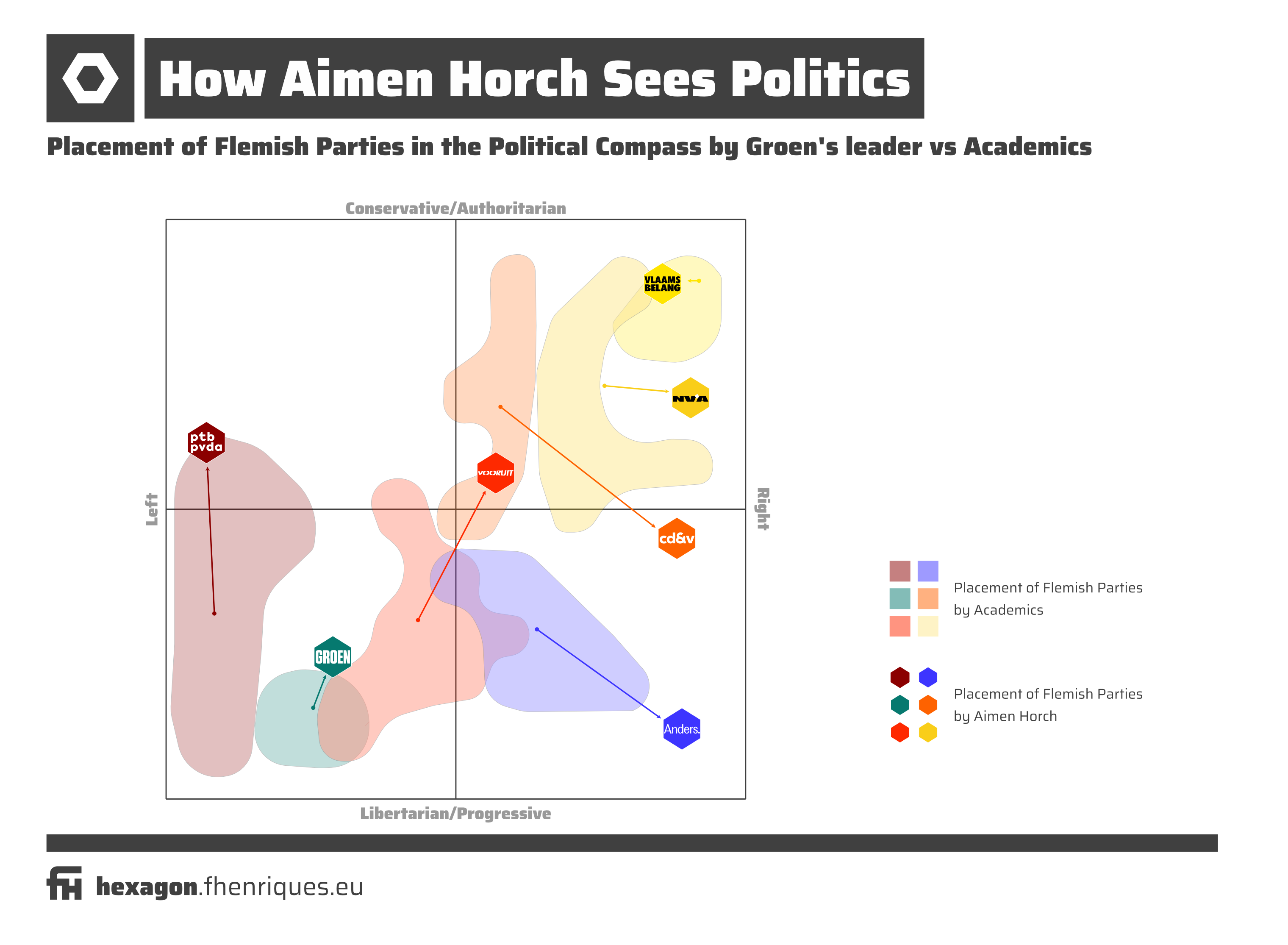 To end this interview, I have a challenge for you. I have here a political compass and I want you to place Groen, and also the other Flemish parties, so we see how you see the Flemish party-system.